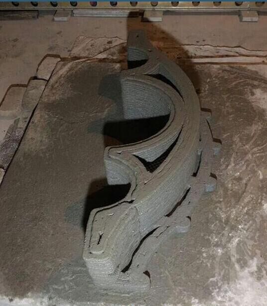 10月18日,來自中國河南的一個建筑3D打印團隊,發布了他們最新3D打印的石拱橋,材料為混凝土。據介紹,這座3D打印的石拱橋的長140厘米,寬58厘米,高50厘米,使用了281千克的混凝土,共打印了59層。