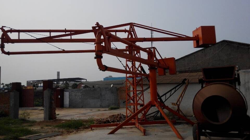 河南金源布料機桿采用回轉,臂架式布料結構,配用125MM輸送管,360度回轉,整機手動操作。具有結構簡單,強度、剛性可靠,操作簡單,靈活,維修方便等特點,與混凝土泵配套使用可廣泛的應用于民用與工業建筑的混凝土澆注工程中