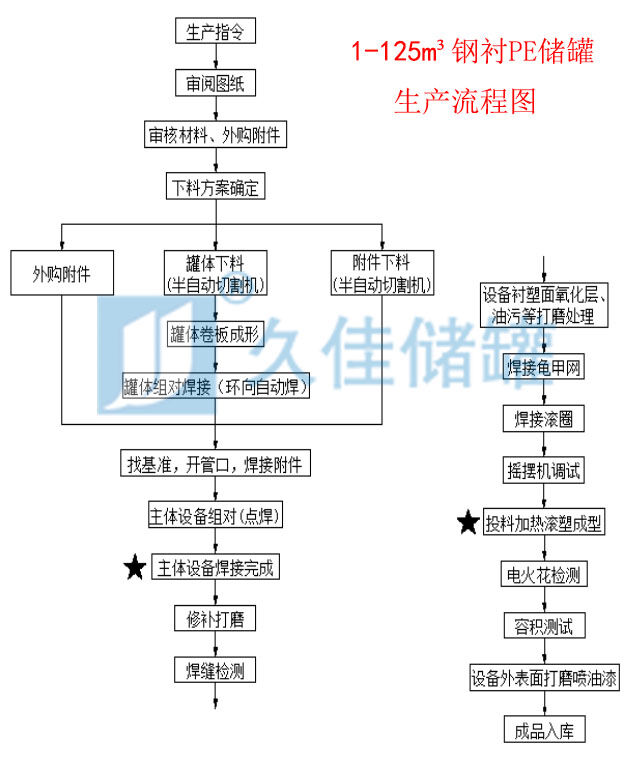100立方鋼襯塑儲罐 久佳牌 三氯化鐵儲罐廠家生產工藝介紹