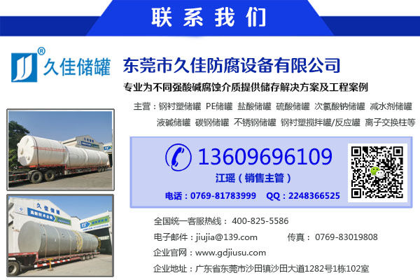 100立方鋼襯塑儲罐 久佳牌 三氯化鐵儲罐廠家特性:鋼襯塑儲罐由于其獨特的滾塑工藝、產品整體結構和材料優異性能,具有整體性好、強度高、無焊縫、不滲漏、抗沖擊、韌性好、重量輕、壽命長、耐酸堿、耐有機溶媒、符合衛生標準、價格低廉、規格品種多等特點。尤其耐腐蝕、長壽命和大規格品種有非常大的優勢,是貯存和運輸各類化工液體半固體的理想產品。其性能大大超過了傳統的玻璃鋼、陶瓷、橡膠、焊接塑料等材料制作的防腐儲罐。已成為傳統防腐儲罐的升級換代產品,逐漸成為防腐儲罐的首選產品。
