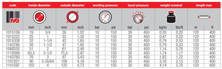 可選擇項: 1. 不同口徑2. 黃色或藍色外層3. 各種工作壓力