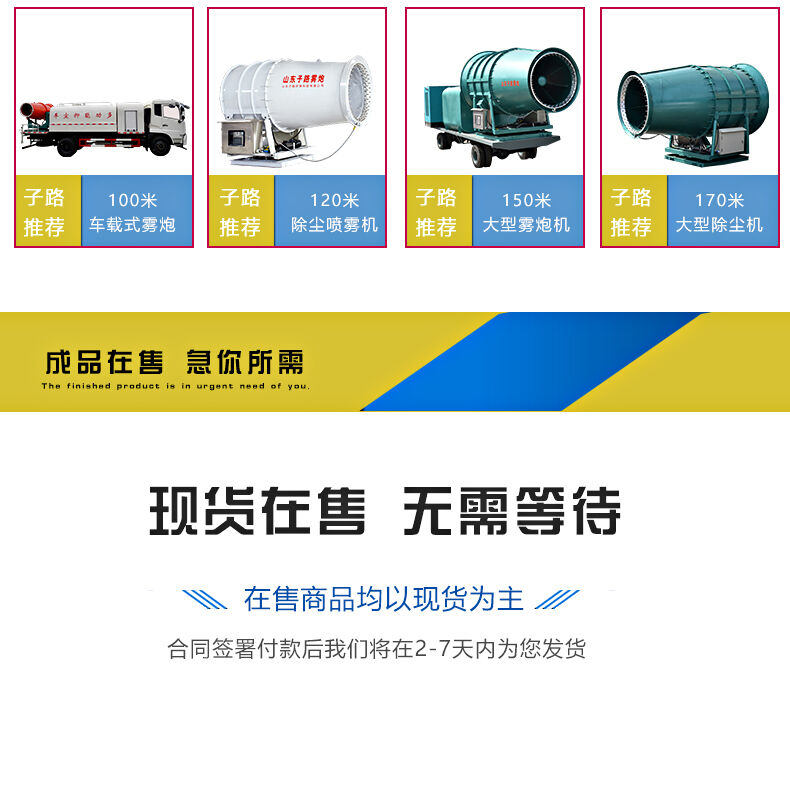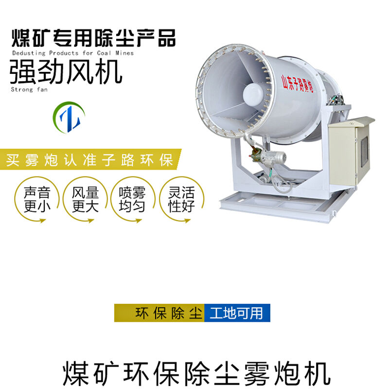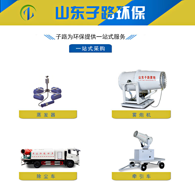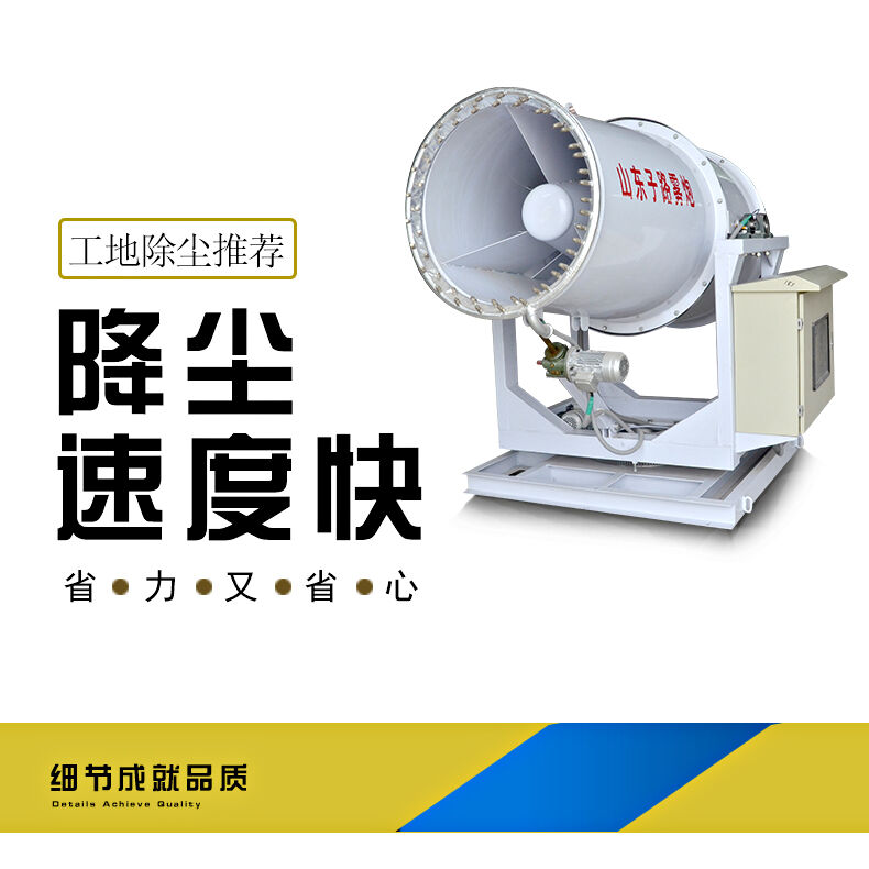 子路環保科技有限公司一款通過高壓風機將儲存的水壓縮成灰塵大小,在利用不銹鋼噴嘴部位將水霧化吹向高空凈化空氣的一種新型環保除塵產品。這款產品名字叫高射程霧炮機,